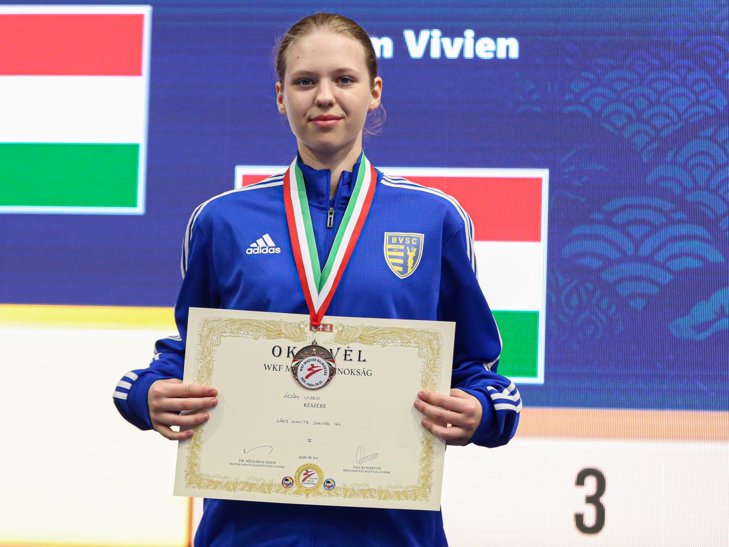 Ugyancsak a junior kategóriában, de a 68 kg-sok mezőnyében indult Ádám Vivien, aki szintén a dobogó harmadik fokára állhatott fel.