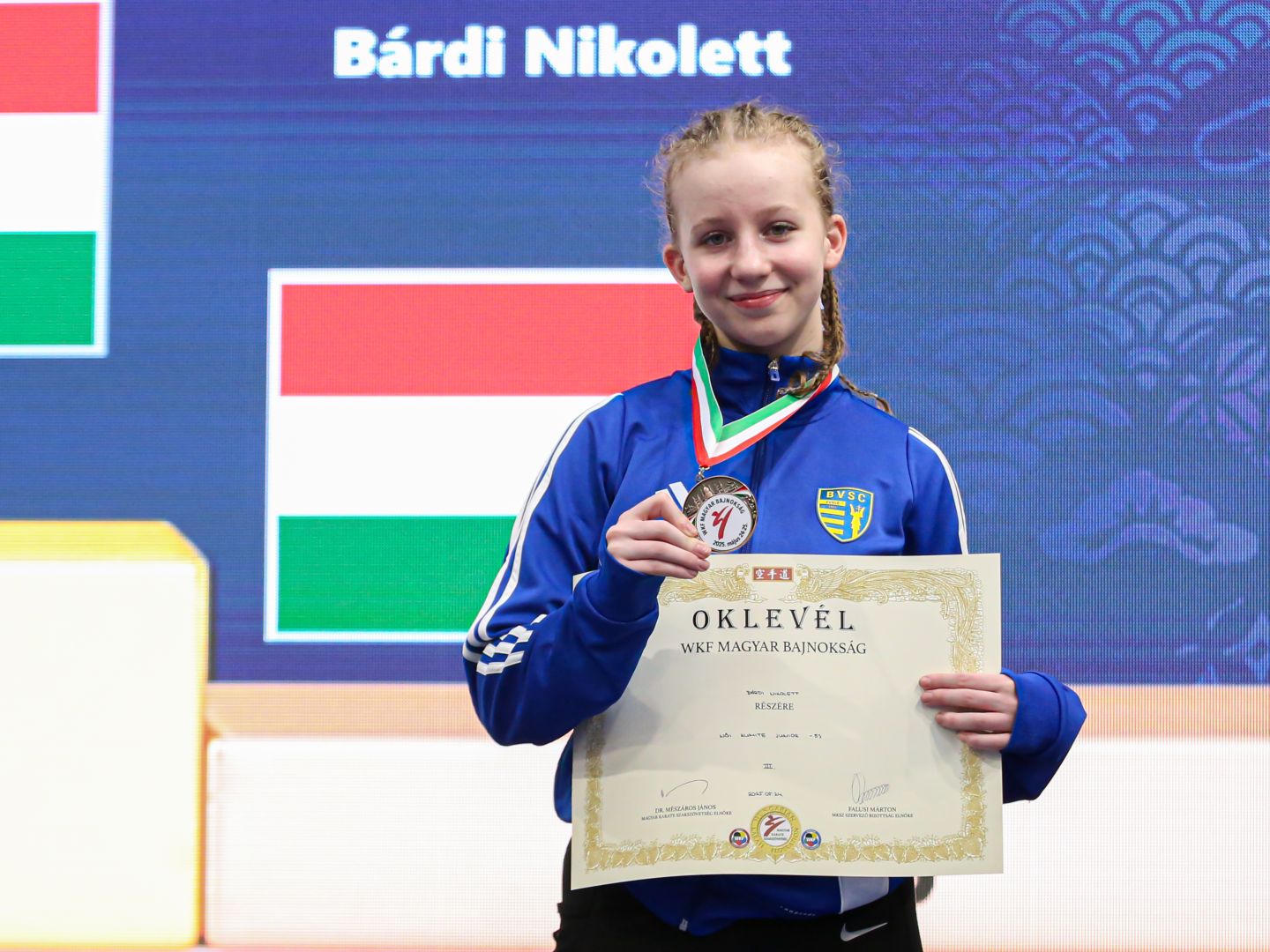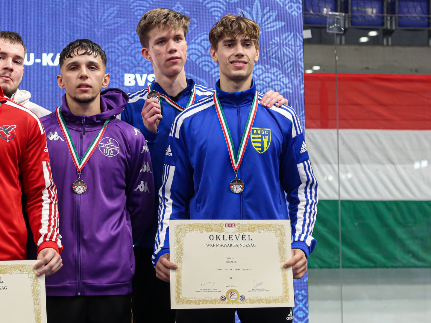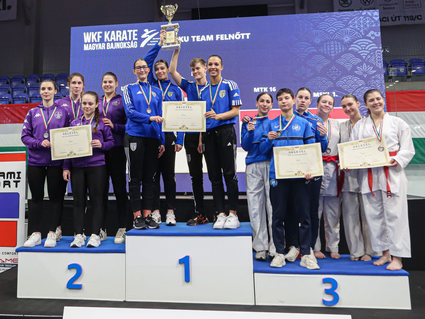 A Megyeri úti Jégcsarnokban rendezték a 2025-ös Karate Magyar Bajnokságot, ahol öt aranyérmet szereztek a BVSC sportolói! Bartha Nikola tanítványai, a felnőtt, az U21-es és a junior kategóriában összesen kilenc medált hoztak el, a nap fénypontja pedig a felnőtt női csapat aranyérme volt, amelynek edzőnk is tagja volt.
