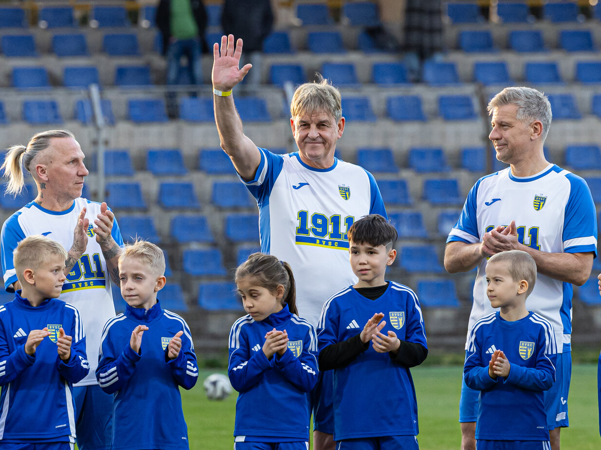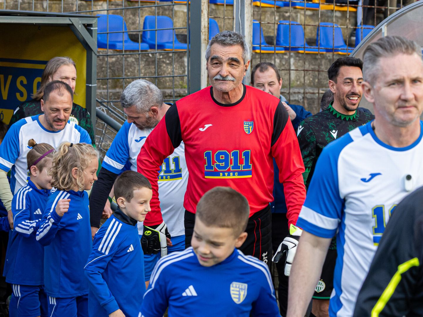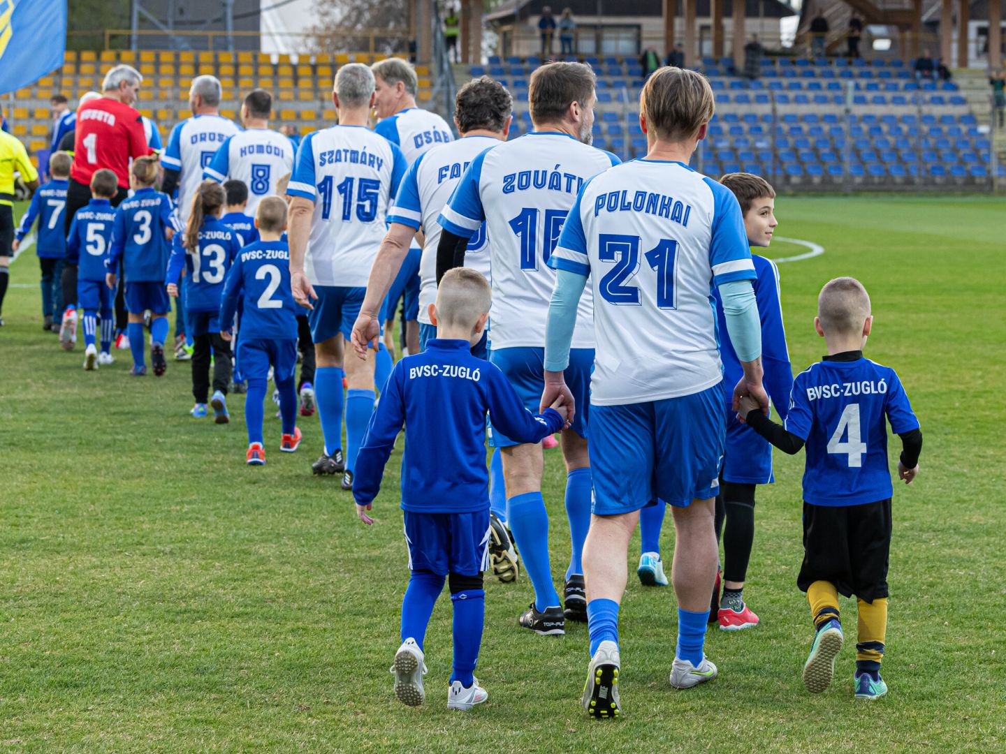 Összeölelkezések, hátbaveregetések és régi poénok... - már a játékoskijáróban és az öltözők környékén is remek hangulatban fogadták egymást a két együttes egykori játékosai, akik közül ma is sokan a labdarúgásban tevékenykednek. Ezt az estét a nosztalgia és az ünnep hangulata lengte át, a lelátón is szép számmal voltak kíváncsiak a múltidézésre. Bár ma már kékben, sárgában - vagy a harmadik számú mezben, amely szürke színű - lépnek pályára csapataink, a 30 évvel ezelőtti időket idézvén, az akkori kék-fehér szerelést öltötte magára a Bükszegi Zoltán csapatkapitány által kivezetett hazai együttes.