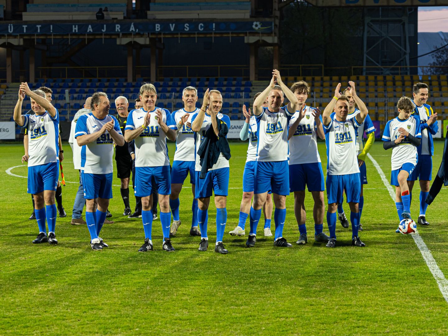 A vízilabdás gálamérkőzés után egy nappal a Szőnyi úti labdarúgó stadionban folytatódott klubunk születésnapi programsorozata! Az NB I 1996-os bajnoki döntőjét megidézvén, vendégül hívtuk a Ferencváros 30 évvel ezelőtti csapatát, hogy legendákkal elevenítsük fel labdarúgó szakosztályunk legsikeresebb szezonját! A BVSC és a Fradi is igazi nagyágyúkkal képviselte magát, valóságos futballünnep alakult a Szőnyi úton, amely méltó emléket állított a múlt nagyjai számára és a BVSC 115 éves történelme számára is. Az eseményt Egervári Sándor, csapatunk akkori edzője is megtisztelte jelenlétével, a találkozó végül 1-1-es döntetlennel zárult, de ezen az estén a végeredmény már nem számított, mosolyok, régi barátságok és a kilencvenes évek hangulata tért vissza egy estére a XIV. kerületbe!