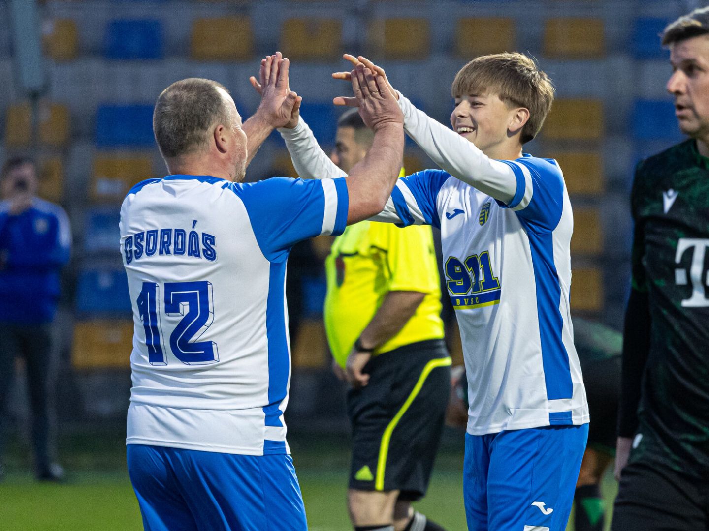 Bognár György, a csapat akkori tízese most nem lépett pályára, de az oldalvonal mellől, fiai társaságában figyelte az eseményeket.