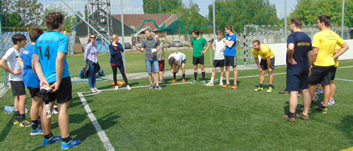 Ezért az elmúlt időszakban a szakosztályvezetői értekezleteket már nem valamelyik tárgyalóban, hanem a szakosztályaink szervezésében rendezzük. Korábban volt már ilyen értekezlet az asztaliteniszezőknél és a vívóknál is, ma pedig a labdarúgók voltak a házigazdái a rendezvénynek. Bükszegi Zoltán szakosztályvezető előbb a létesítményt – az irodát, az öltözőket és a pályákat – mutatta meg kollégáinak, melyet a vendégek közül többen még csak most láttak először. Majd egy rövid beszámolót is tartott a labdarúgószakosztály múltjáról, jelenéről és jövőbeli terveiről. Ezt követően került sor a fent említett rendhagyó labdarúgótornára, melynek eredményhirdetésétől ezúttal eltekintenénk, a lényeg, hogy úszóink, kézilabdázóink, röplabdásaink és klubunk alkalmazottjai is jól érezték magukat a futballpályán.