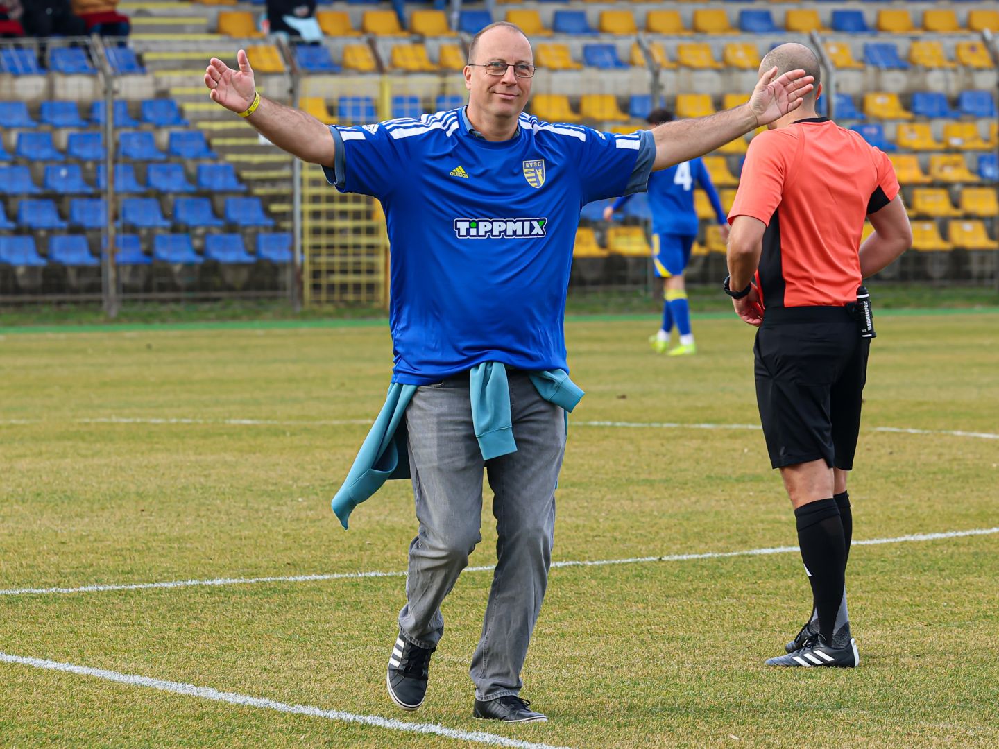 Szokásunkhoz híven ismét ünnepélyes kezdőrúgót köszöntehett a Szőnyi út közönsége az idei első hazai bajnoki mérkőzés előtt. Szabó Péter, aki korábban blubunk színeiben sportolt 50. születésnapjára kapta ajándékba a kezdőrúgás elvégzését.