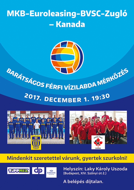 A kanadai válogatott két barátságos mérkőzés előtt még egy harmadik edzőmeccset is játszik uszodánkban. A december 1-i mérkőzésen, 19.30-tól a mi OB I-es felnőtt csapatunk lesz az ellenfelük.