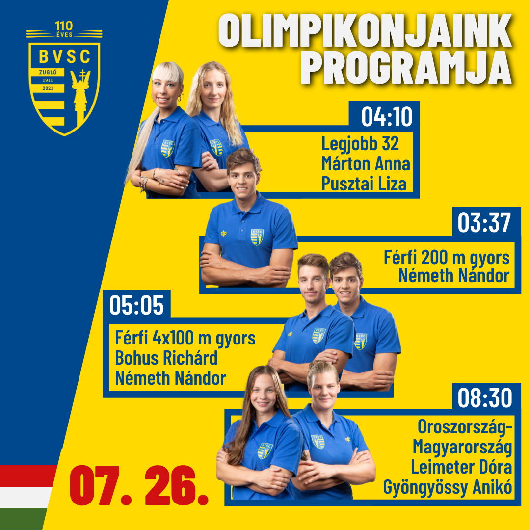 Ezzel számunkra véget ért az első nap, holnap viszont további négy sportolónkért szoríthatunk! Pásztor Mátyás kezdi a napot a férfi vízilabda-válogatottal, majd Burián Katalin, Bohus Richárd és Németh Nándor is vízbe ugrik!